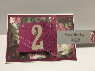 this one uses the beautiful Petal Promenade Designer Series Paper, and the fabulous Large Letters Framelit dies, with a quick hark back to the Large numbers (no longer available) And I've used the Hostess set Hand Delivered for the small flowers and sayings.